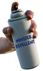 Of course, every child is different, but if you are faced with this issue, here are a couple of tips that might help. Be respectful of your child's fears. You don't have to overreact or be overprotective, but don't try to laugh it off and never tease. For me, the first step was to address the things that frightened Kait and then reassure her. One of my tools was a can of "monster repellent" on her night table. It was, in fact, a spray can of powder-scented room deodorizer with a home-made label glued on. In the evening we would spray under the bed and in the closet. To this day the smell of baby powder relaxes her!
